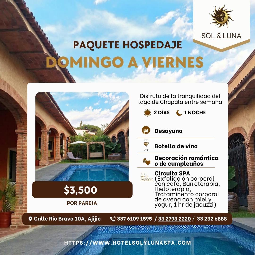 Déjate envolverte por la tranquilidad del Lago de Chapala y disfruta de una experiencia única en Sol & Luna. Disfruta de una estancia de ensueño con nuestros paquetes de hospedaje de domingo a viernes.