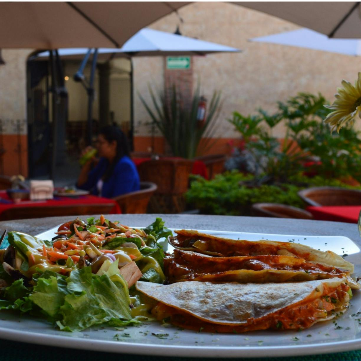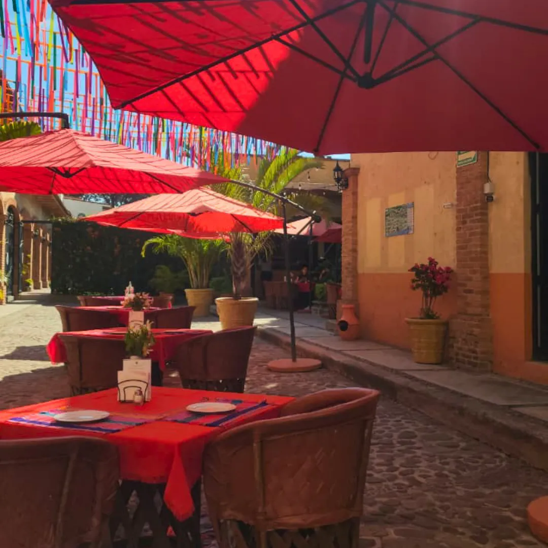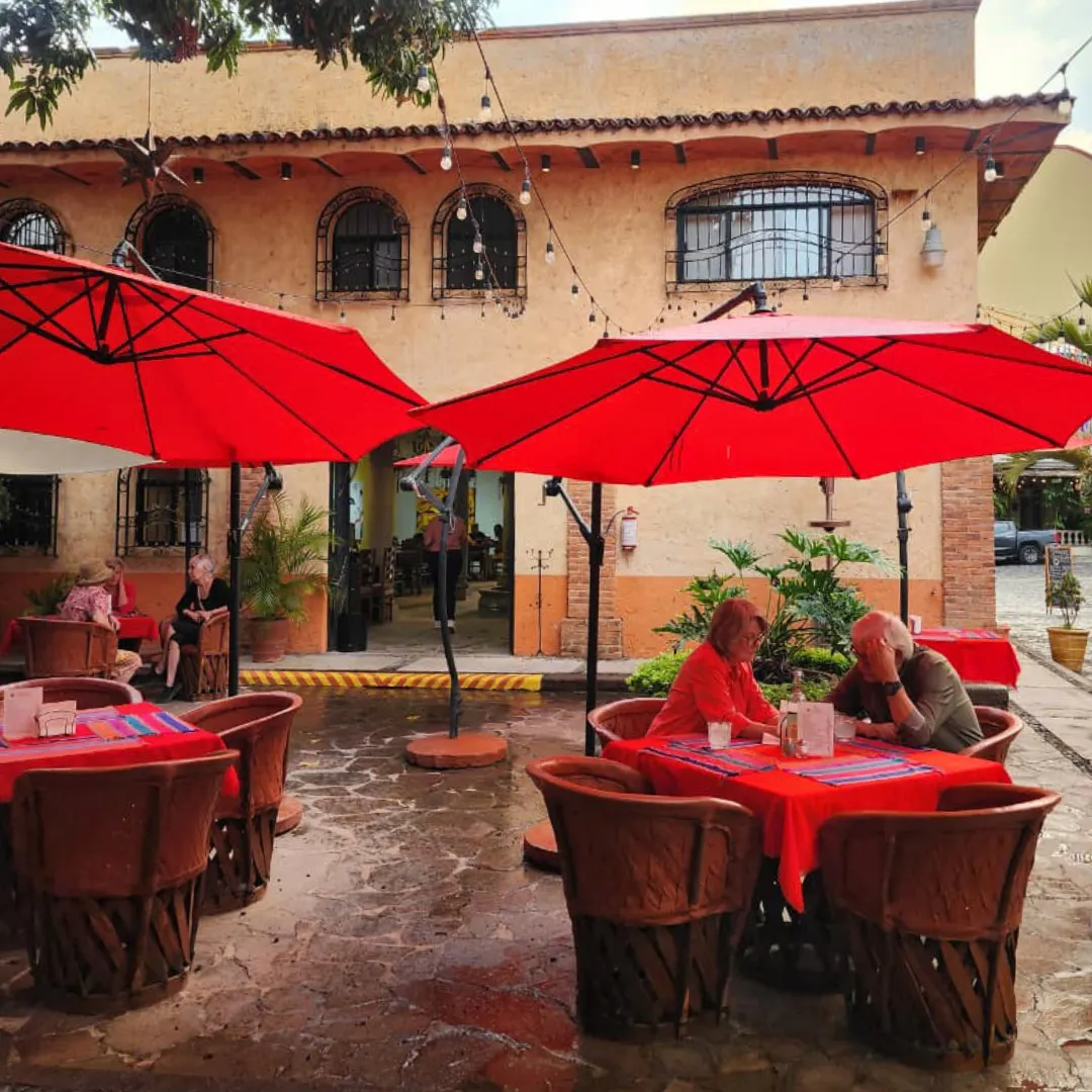 Terraza al Aire Libre: Un espacio tranquilo con estilo mexicano, ideal para relajarte mientras degustas tus alimentos o bebidas favoritas.