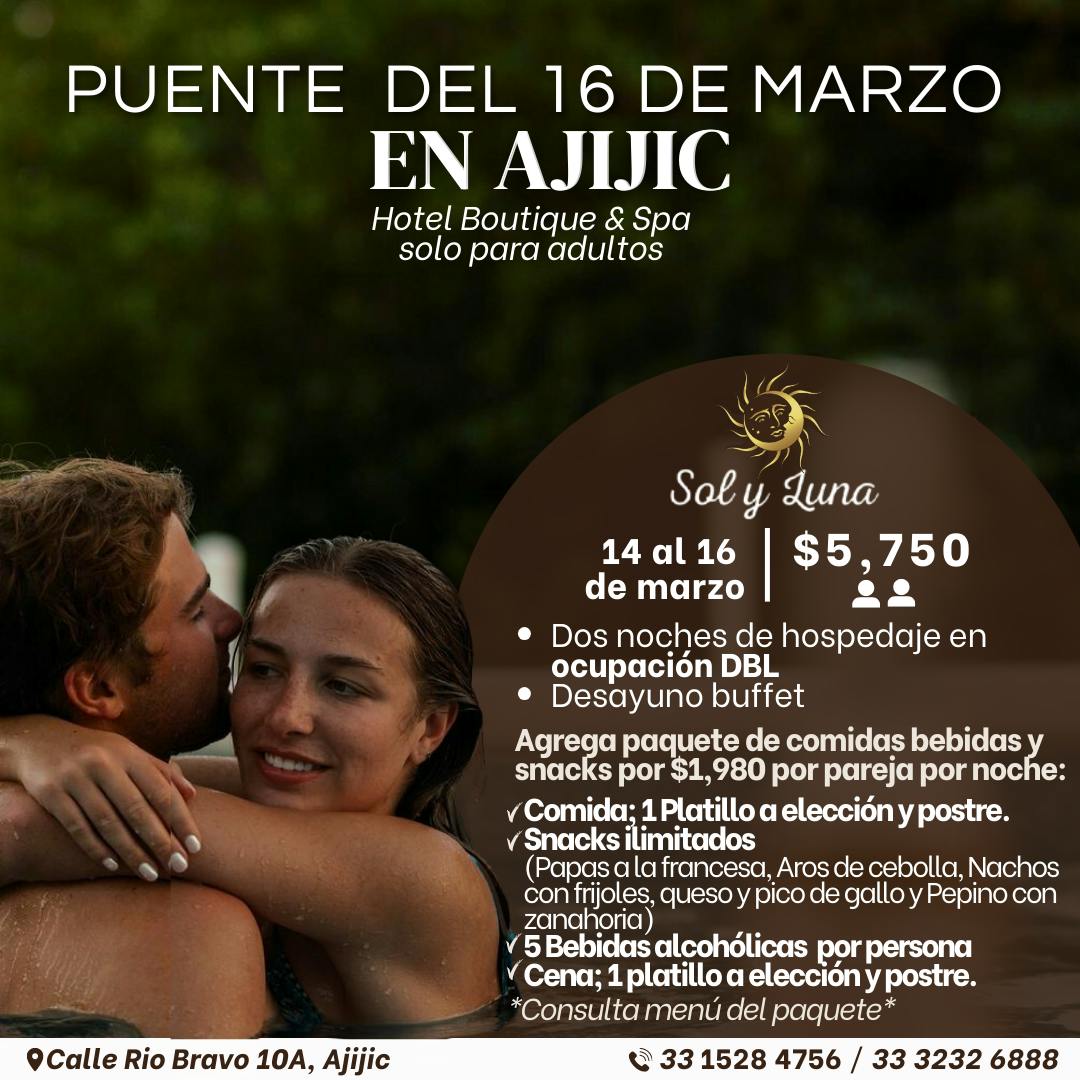 Regálense un fin de semana solo para ustedes en Sol y Luna Hotel Boutique & Spa, un espacio exclusivo para adultos donde el descanso, el romance y la tranquilidad se encuentran.
